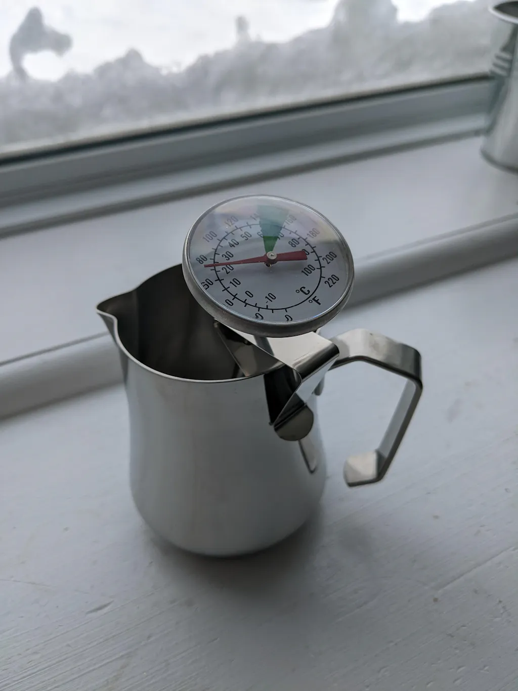 This frothing thermometer is designed to provide fast and accurate measurements in both Fahrenheit and Celsius. Its large 45mm (1-3/4") dial features color coded optimal temperature ranges that can be easily read with just a quick glance.