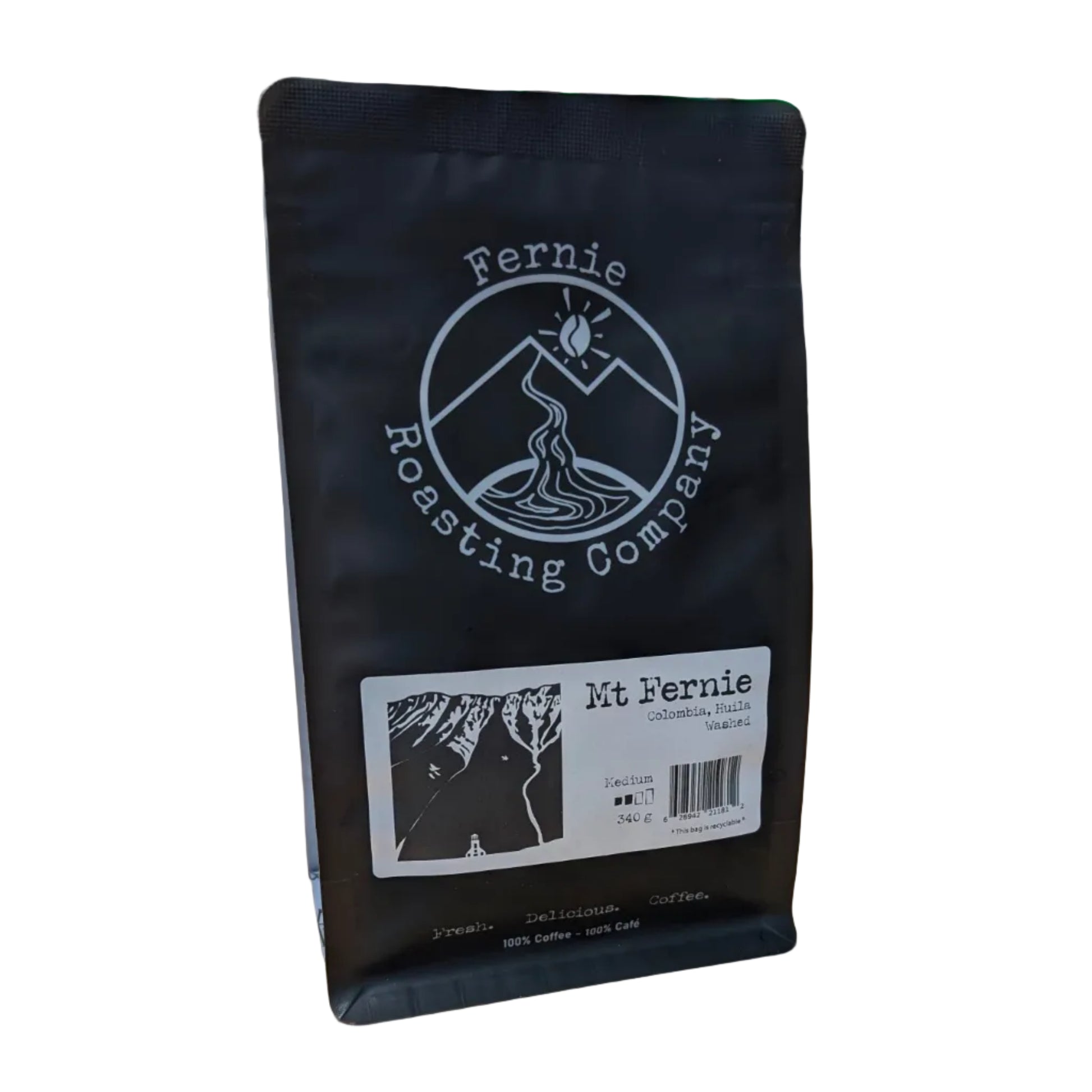 Fernie Roasting Company's Mt Fernie is a smooth, medium roast Colombian coffee grown at 1200 to 2000 meters. This washed and sun-dried coffee delivers sweet, fruity notes with exceptional smoothness. A versatile everyday coffee that showcases the balanced character of quality Colombian beans, perfect for those who appreciate approachable, clean-tasting coffee.
