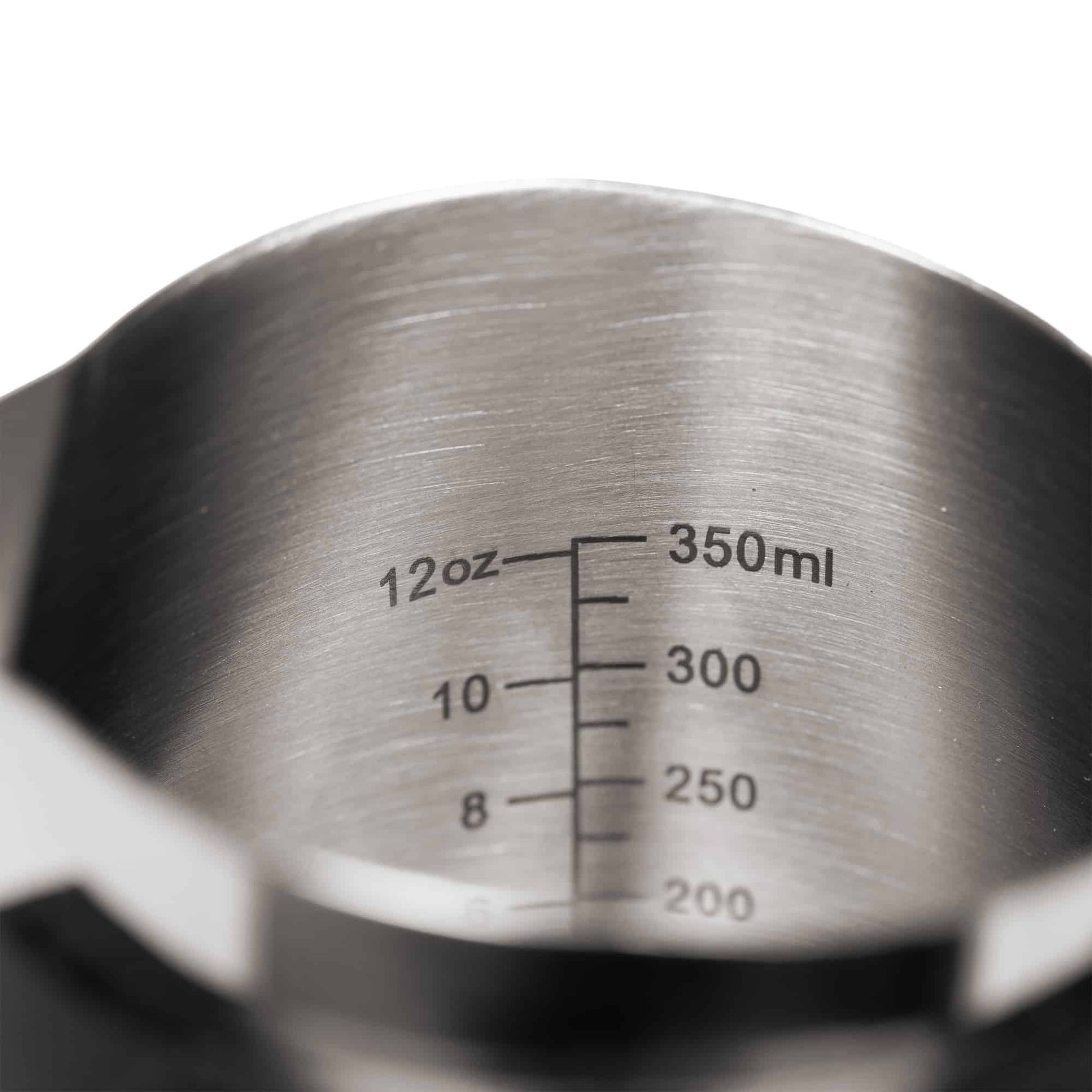With a 400ml (13.5 oz) capacity and laser-etched interior measurements from 100ml to 350ml, the Flair Milk Pitcher is the perfect size for crafting cortados, cappuccinos, and small lattes from steamed milk. The front crease, starting one-third up the pitcher, helps position the steam wand effortlessly and guides milk flow for consistent, smooth pours. At the spout, a rounded tip ensures controlled flow and precision for detailed latte art.